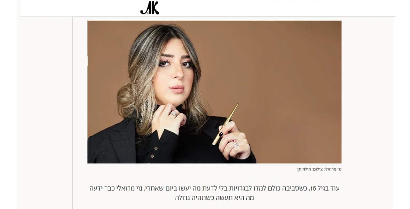 בכתבה במגזין את נוי מרואלי מספרת איך כבר בגיל 16 הייתה לה מטרה ברורה בעולם הביוטי, איך בנתה את עצמה בעבודה קשה, למידה בלתי פוסקת ושאיפה למצוינות – עד להקמת קליניקה ואקדמיה מקצועית, עם דגש על מראה טבעי, התאמה אישית, טכנולוגיות מתקדמות ושירות מדויק.